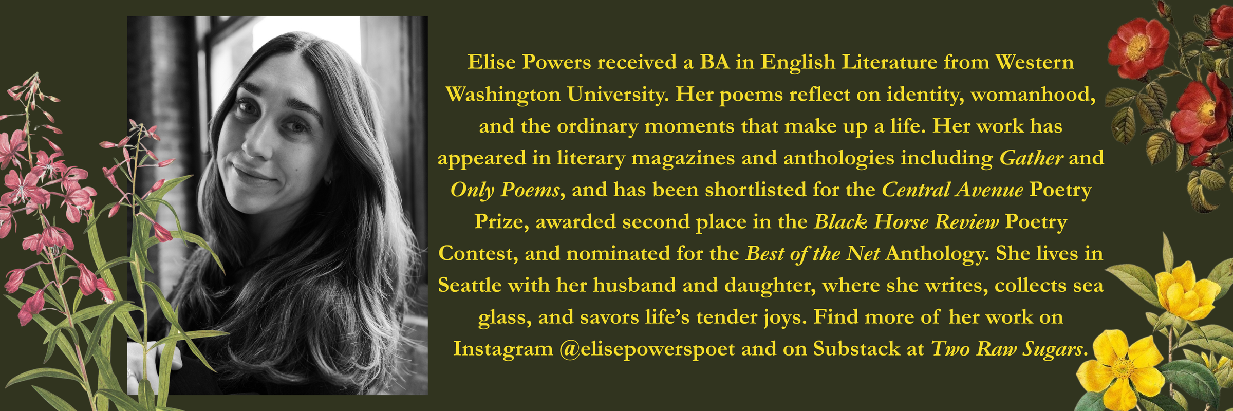 "Each poem felt like a generous treat, and how I wanted to savour them. Elise has such a gift for distilling the complexities of life, love, and longing into a few carefully chosen words. Her poetry is as powerful as it is gentle, the kind that lingers with you long after the page is turned. Her poems took me to so many places in so few lines, a true art, but also kind of magic." — Jessica Urlichs, Sunday Times bestselling author of Beautiful Chaos